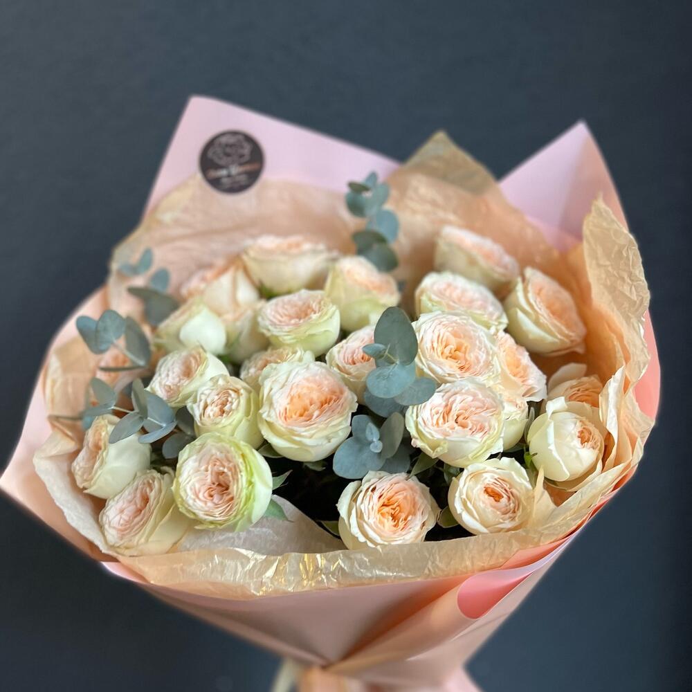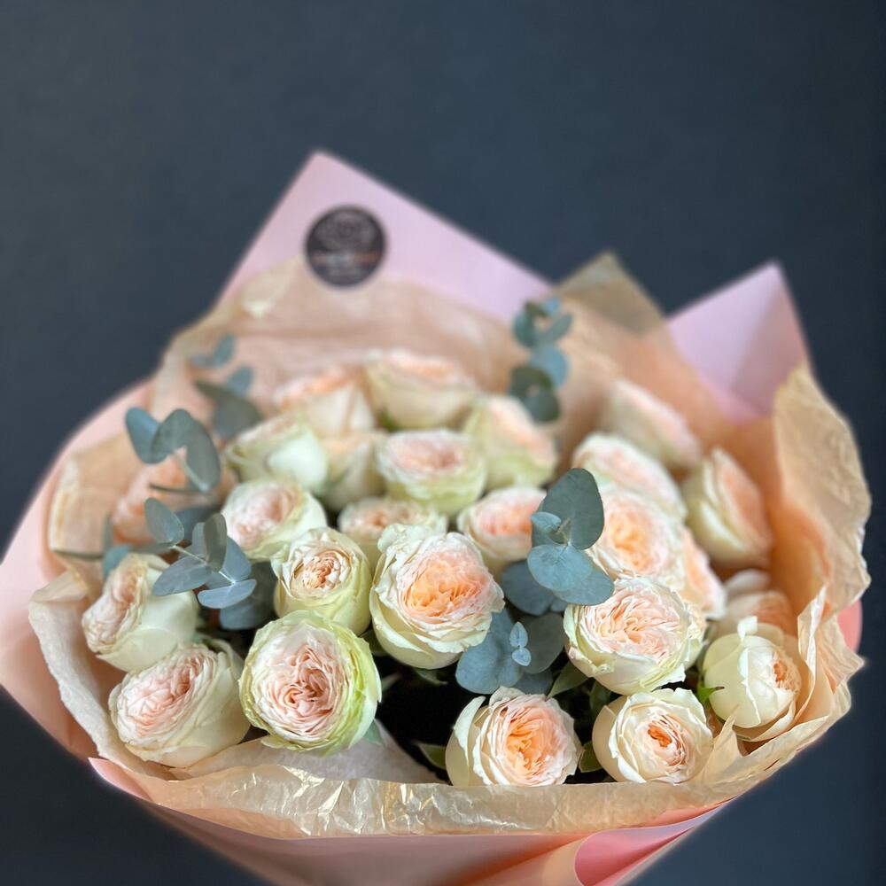 Букет из кустовой розы Павлова и эвкалипта