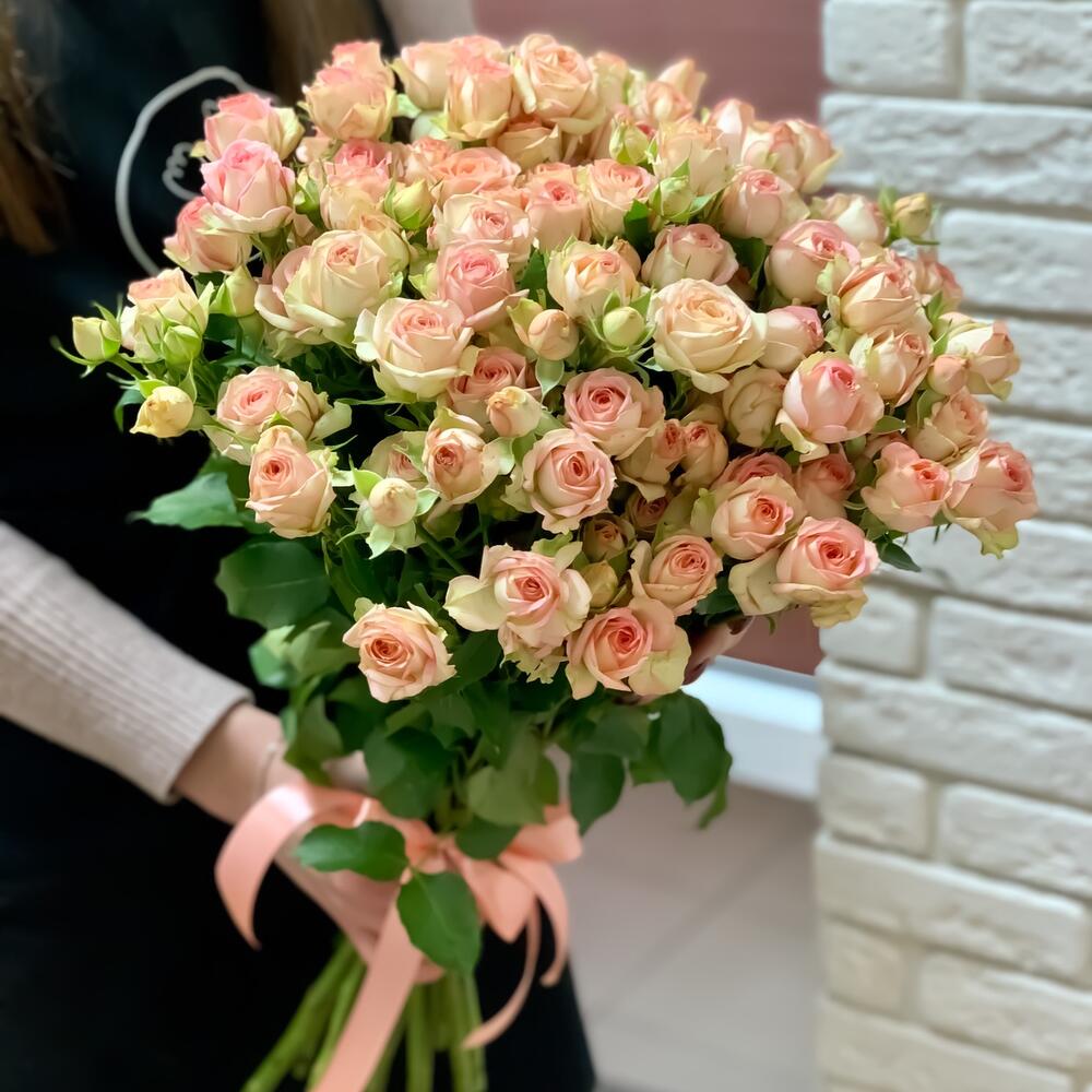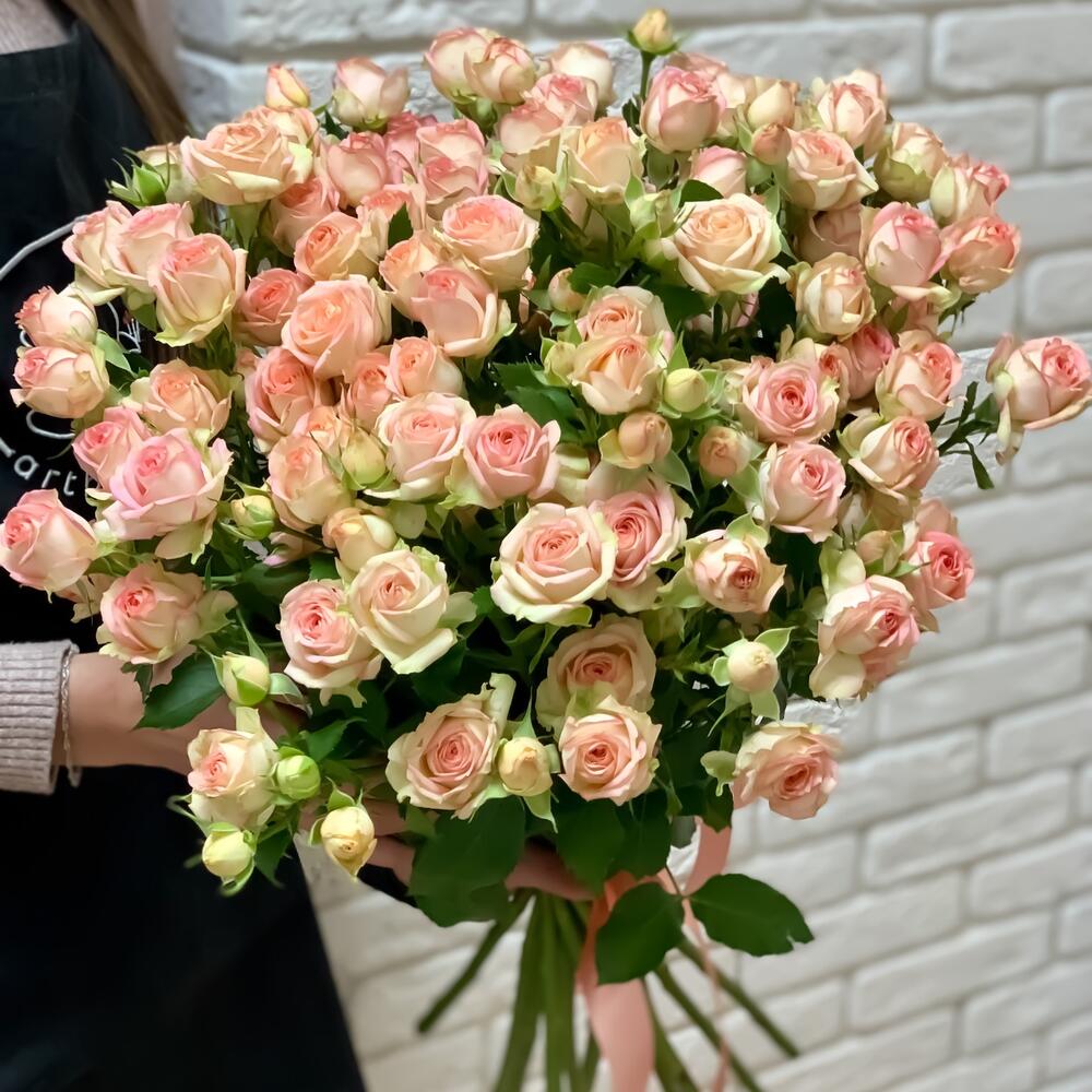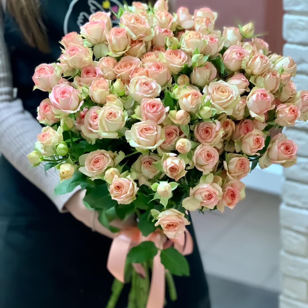 Альстромерии, Кустовые розы, Лизиантусы, Пионовидные розы, Розы, Ромашки