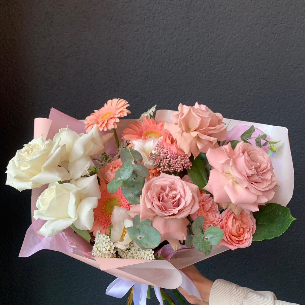 Категорий: Герберы, Кустовые розы, Пионовидные розы, Розы, Тюльпаны