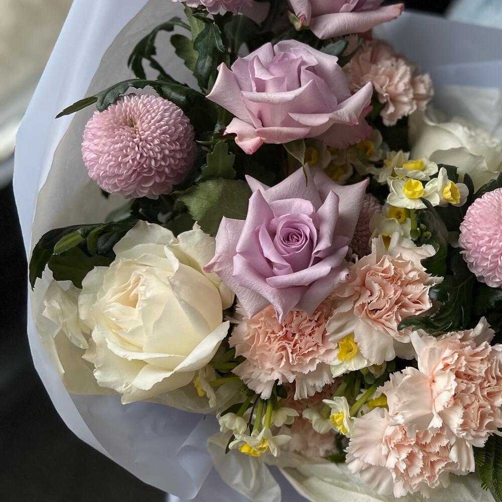 Категории: Гвоздики, Пионовидные розы, Розы, Хризантемы