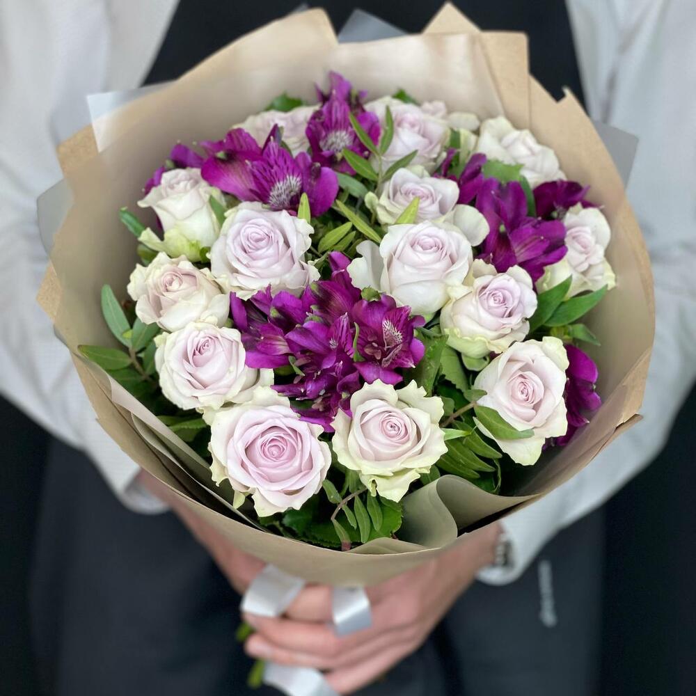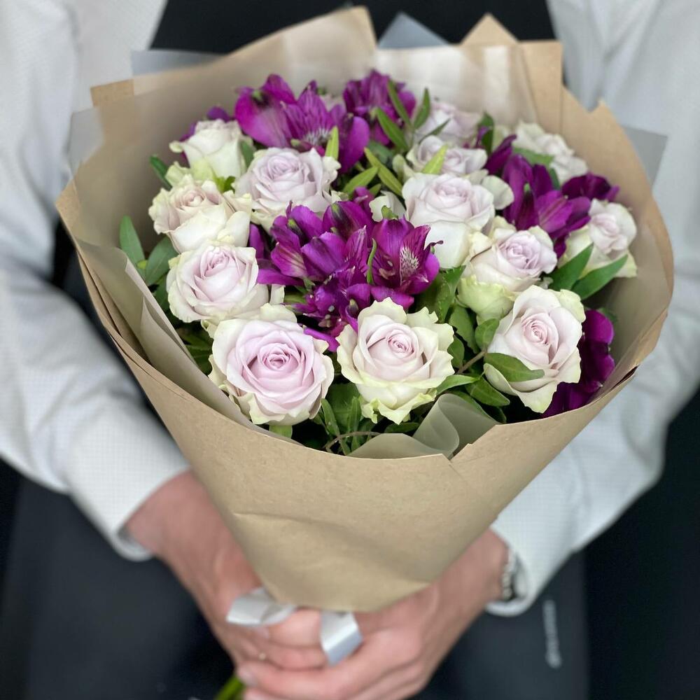 Роза – 15 шт.Альстромерия – 3 шт.Крафт – 3 шт.