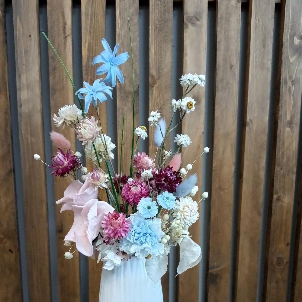 Букет из стабилизированных цветов и сухоцветов в вазе