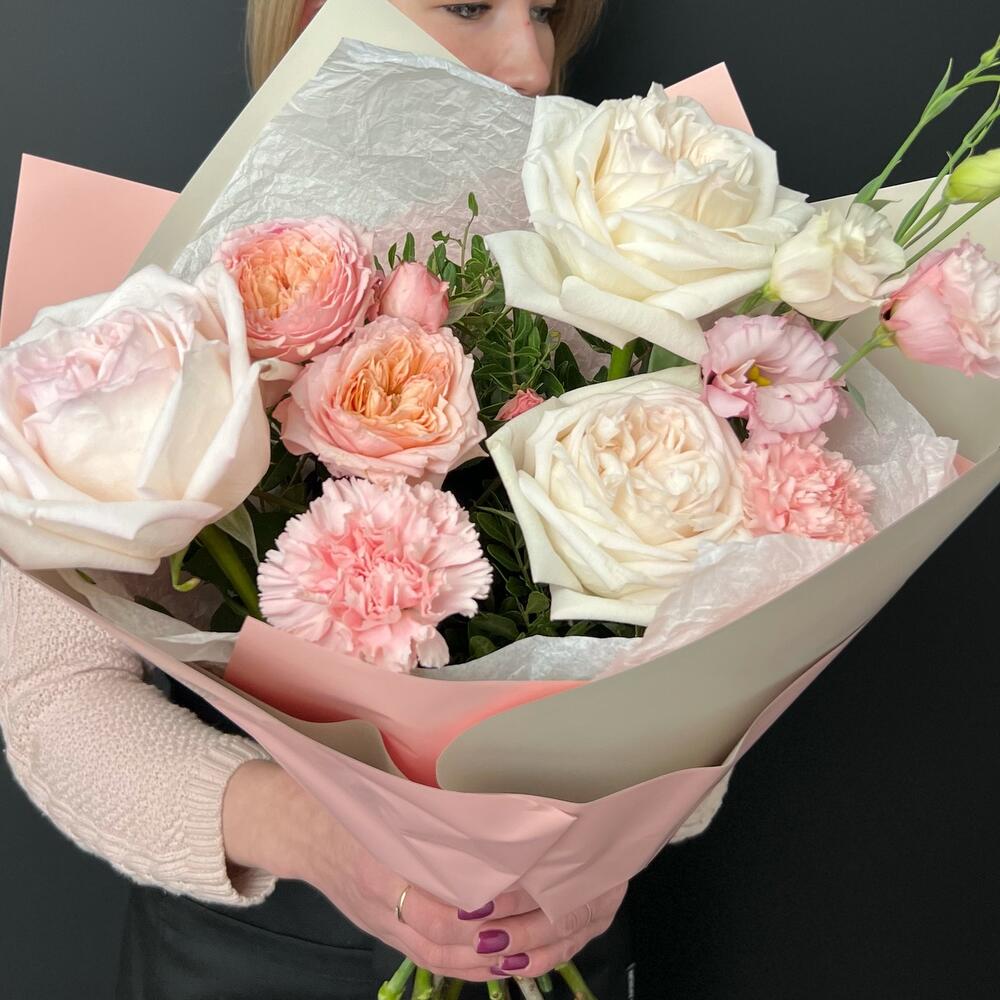Категорий: Гвоздики, Кустовые розы, Лизиантусы, Пионовидные розы, Розы
