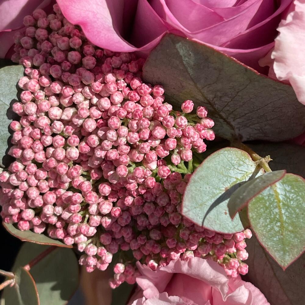 Лента – 2 шт.Лизиантус – 2 шт.Озотамнус – 2 шт.Роза одноголовая – 5 шт.