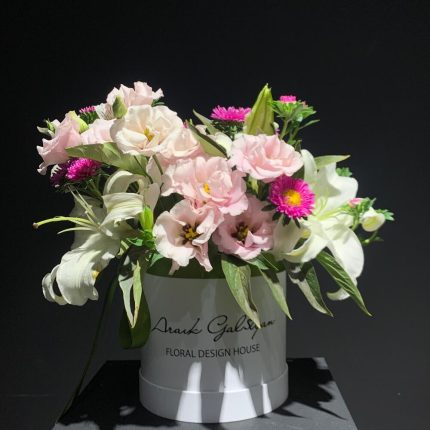 Альстромерии, Гвоздики, Кустовые розы, Лизиантусы, Розы, Хризантемы
