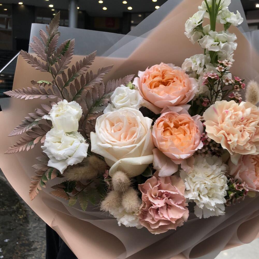 Категорий: Гвоздики, Лизиантусы, Пионовидные розы, Розы, Сухоцвет