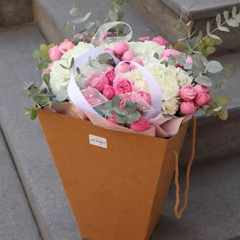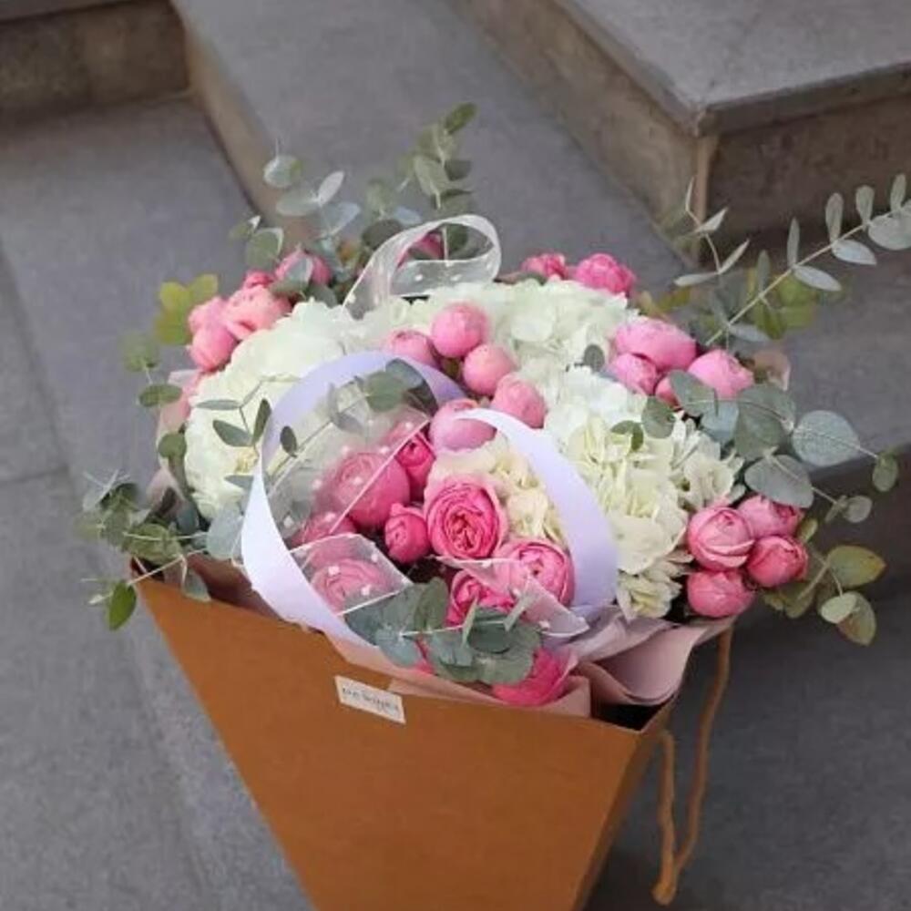 Категории: Гортензии, Пионовидные розы, Розы, Эвкалипт