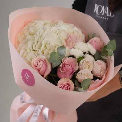 Альстромерии, Гвоздики, Кустовые розы, Лизиантусы, Розы, Хризантемы