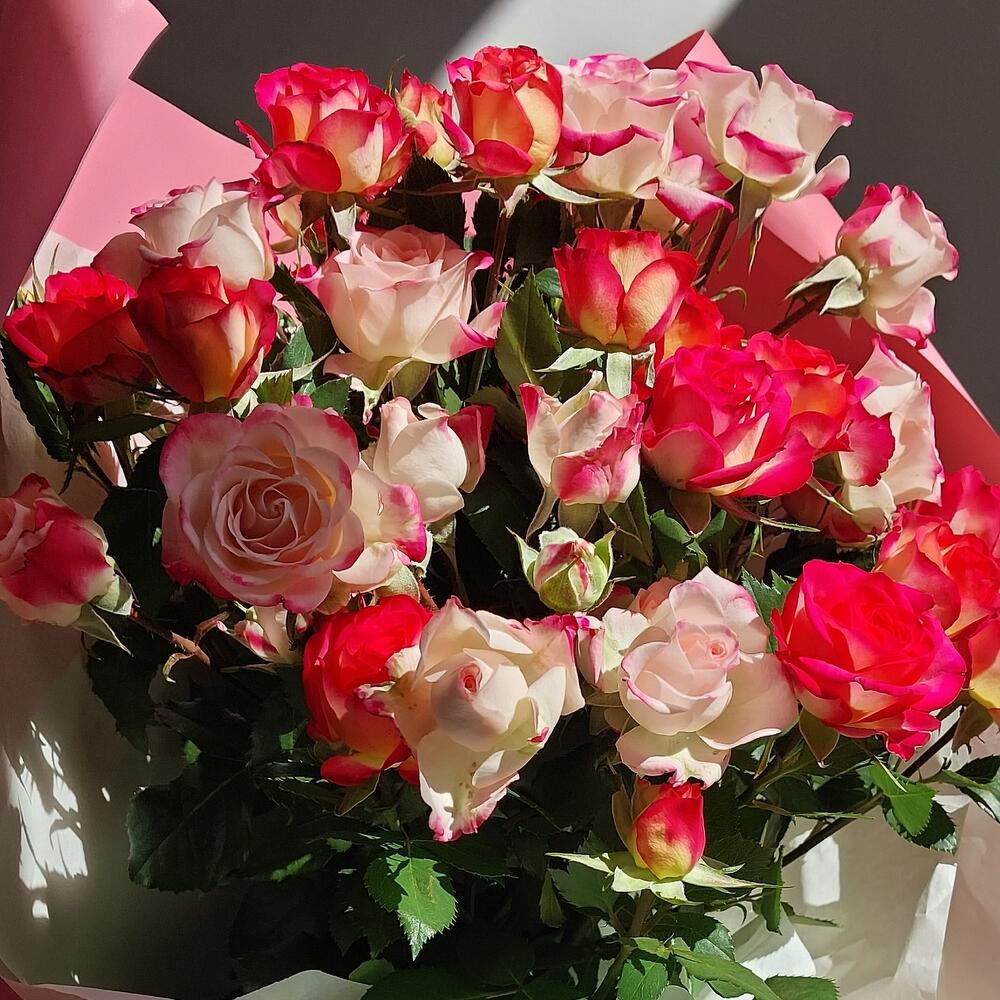 51 Пионовидных кустовых роз в дизайнерской упаковке