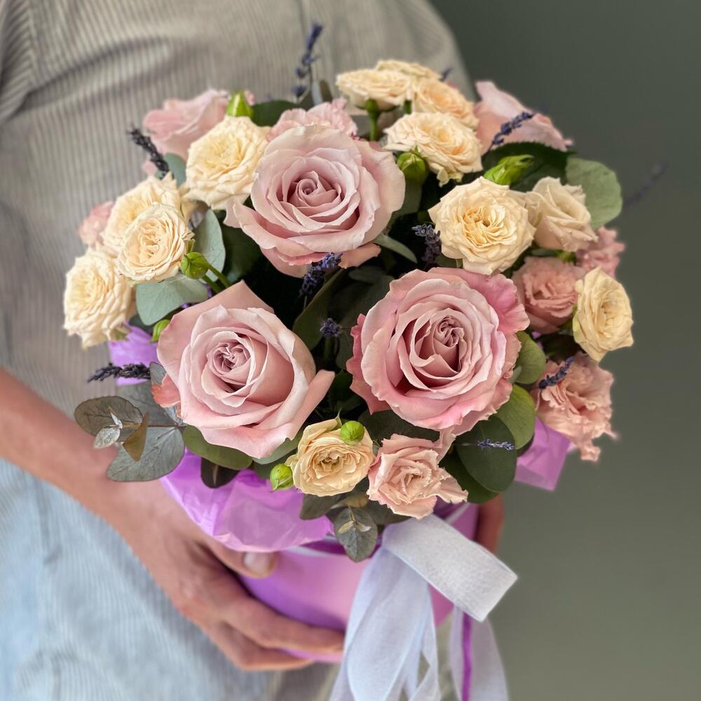 Цветочная композиция с нежными розами"Французский поцелуй"
