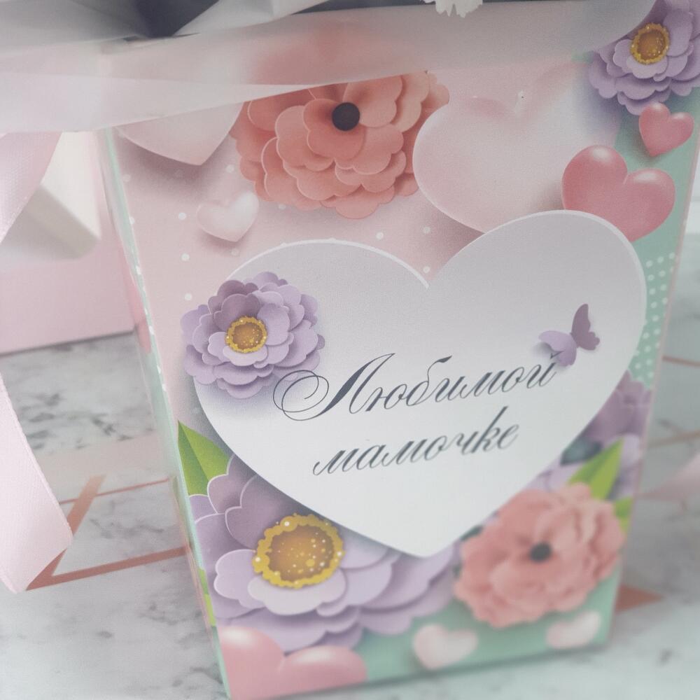 Коробочка с различными цветами в коробочке с текстом “Любимой маме”. В подарочном пакете с ручками. Дарите с удовольствием)))