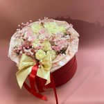 Яркие и красивые цветы с пионовидными розами в большой коробке