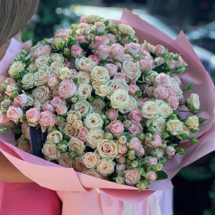 Spray rose – 7 шт. chrisantema – 7 шт. Decoration – 7 шт. packaging design – 1 шт. gift message card – 1 шт.