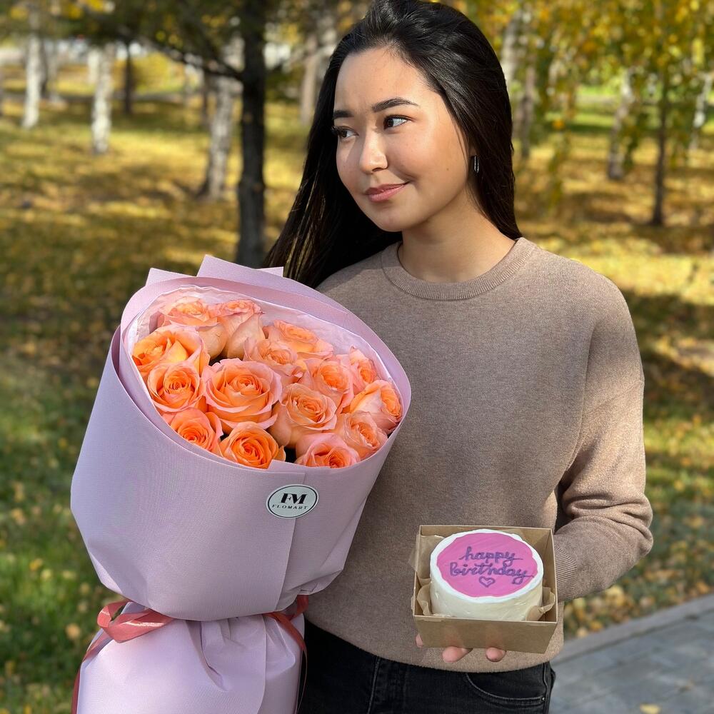 Комбо 15 роз + бенто торт