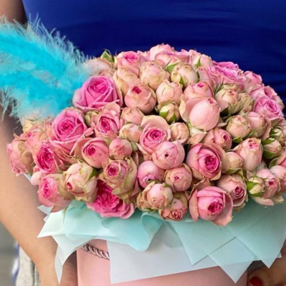 Шикарный букет мраморной кустовой розы 51 шт