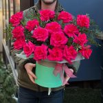 Роскошная композиция из малиновых роз в шляпной коробке удобный и практичный подарок на любой праздник для ваших близких