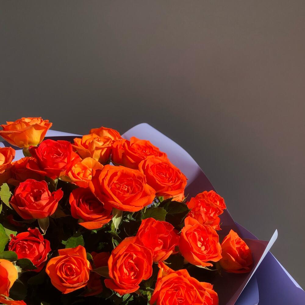 Моно букет из 9 ярких кустовых роз