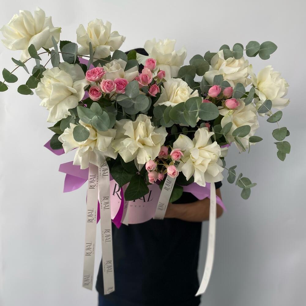 Цветы в коробке,пионовидная Роза,ароматная Роза