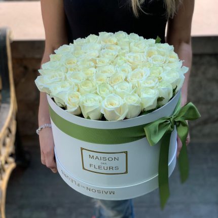45 белых роз в Коробке
