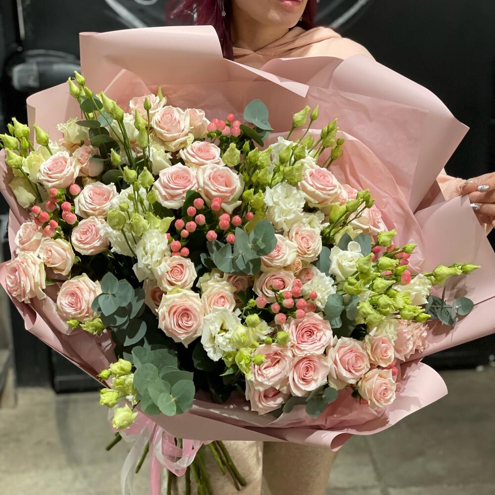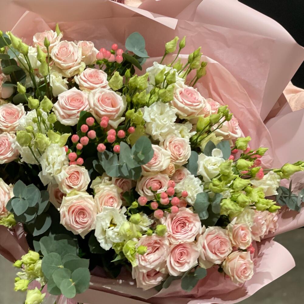Кустовые розы, Лизиантусы, Розы, Сухоцвет