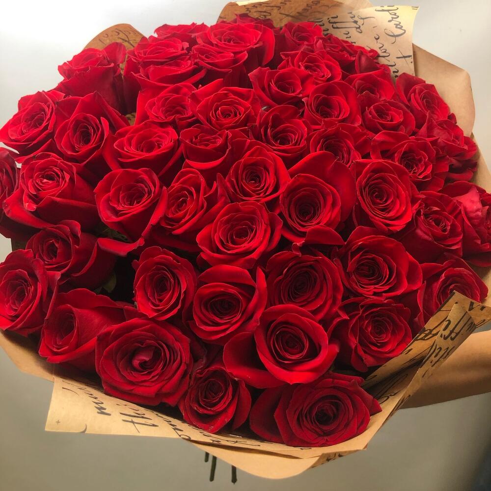 розы эквадор – 51 шт.Крафт – 2 шт.Лента – 1 шт.