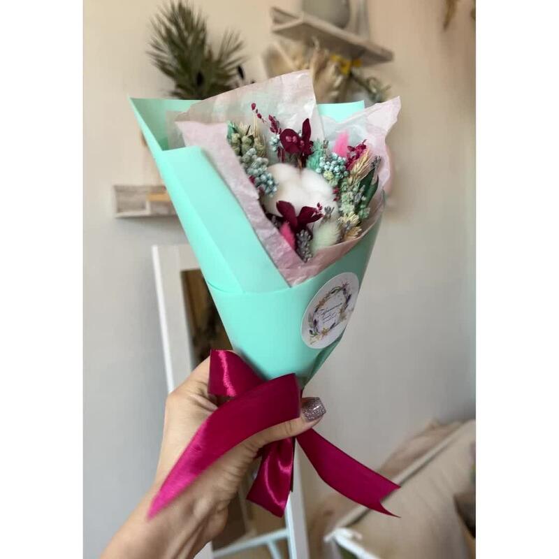 Букет комплимент из сухоцветов с лавандой бирюзово – желтый
