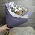 «Лавандовое созвездие» Букет из розы, гвоздики, статица и хлопка