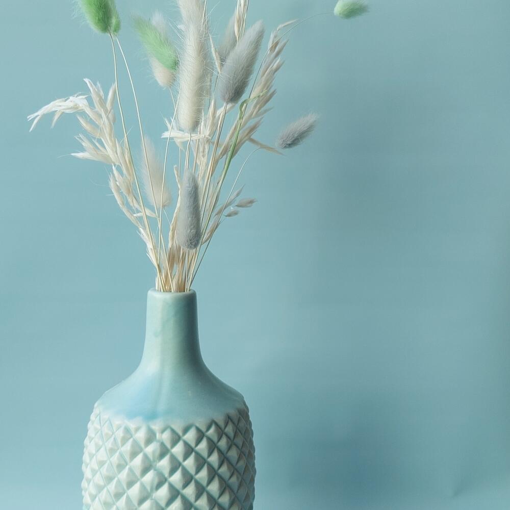 Ваза керамическая – 1 шт.Лагурус (сухоцвет) – 15 шт.овес сухоцвет – 3 шт.