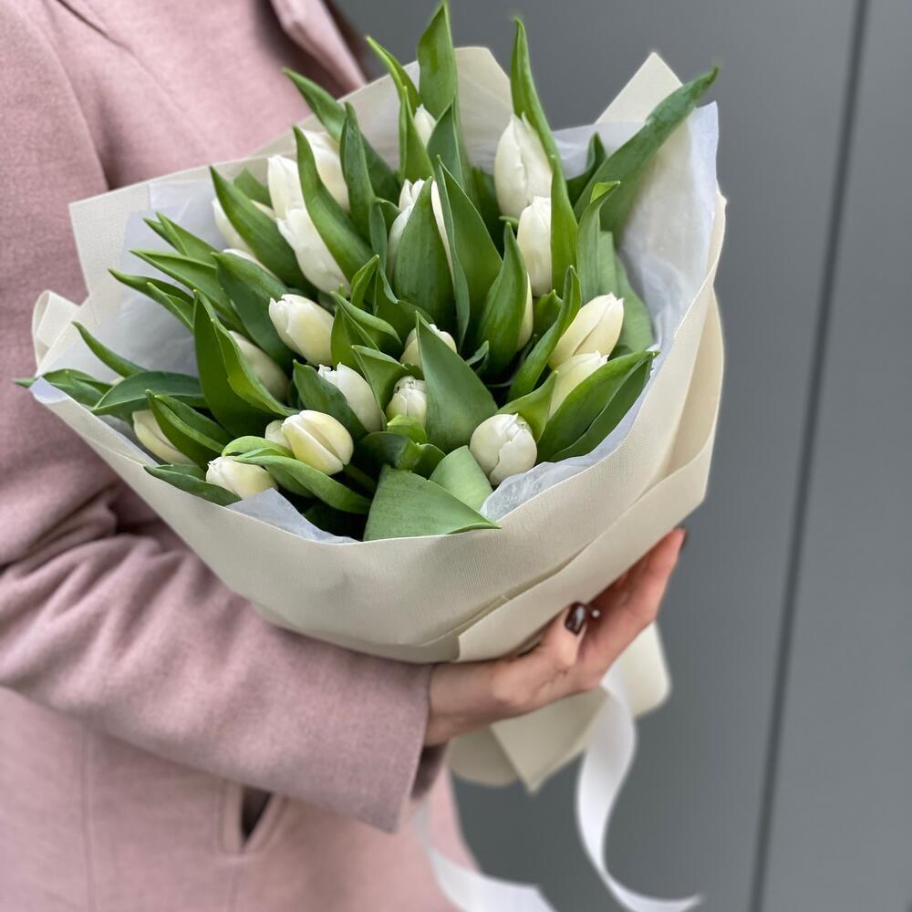 Букет Белые ночи из 25 белых тюльпанов