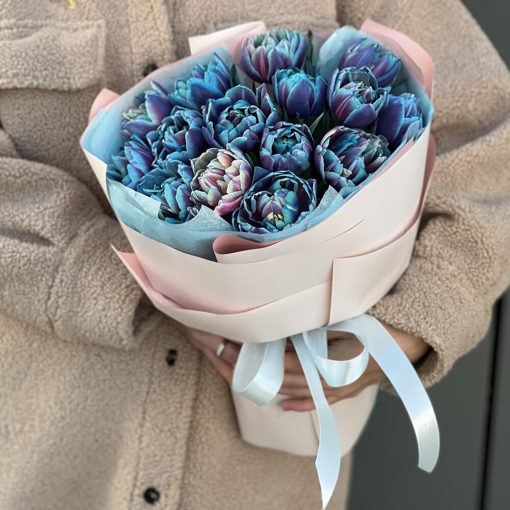 Букет из 15 пионовидных тюльпанов в оформлении!