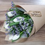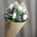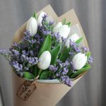 Букет с тюльпанами и лимониумом