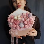 “Атлас☁️” – цветочная композиция с зефиром в деревянном ящике