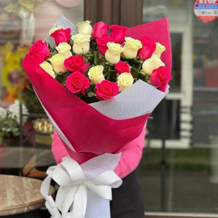 Шляпная коробка гортензией, пионами, эустомой, тюльпанами, гиацинтами, фрезией и гвоздикой “Джоанна”