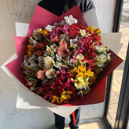 Большой авторский букет из французских и пионовидных роз с маттиолой с эвкалиптом