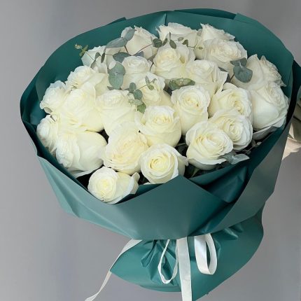 Букет из гортензии, роз, лилии, гербер, лимониума, сантини и эустомы в стильной упаковке Туманное поле